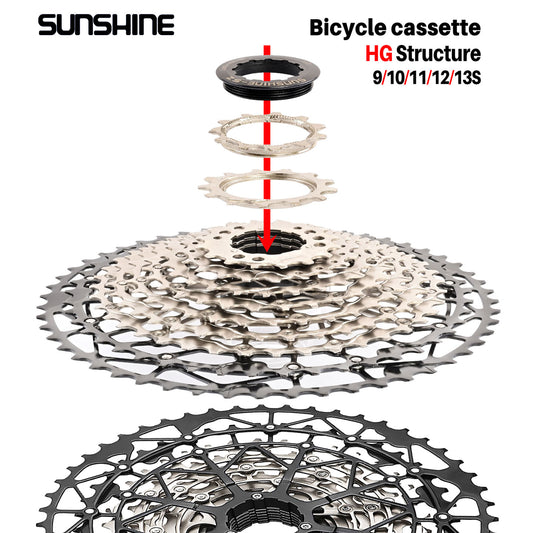 SUNSHINE Hollow Mountain Freedom Wheel 9/10/11/12/13S Folding Bicycle 40T/42T/46T/48T/50T/52T Variable Speed Card Flywheel HG