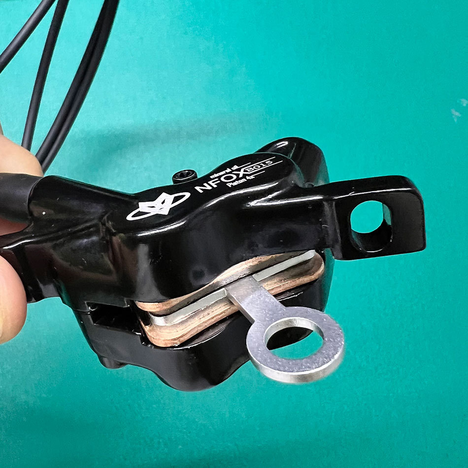 When in use, fill the syringe with brake fluid and push the brake fluid into the caliper as shown in the picture. The brake fluid will flow along the caliper and oil pipe to the brake handle!