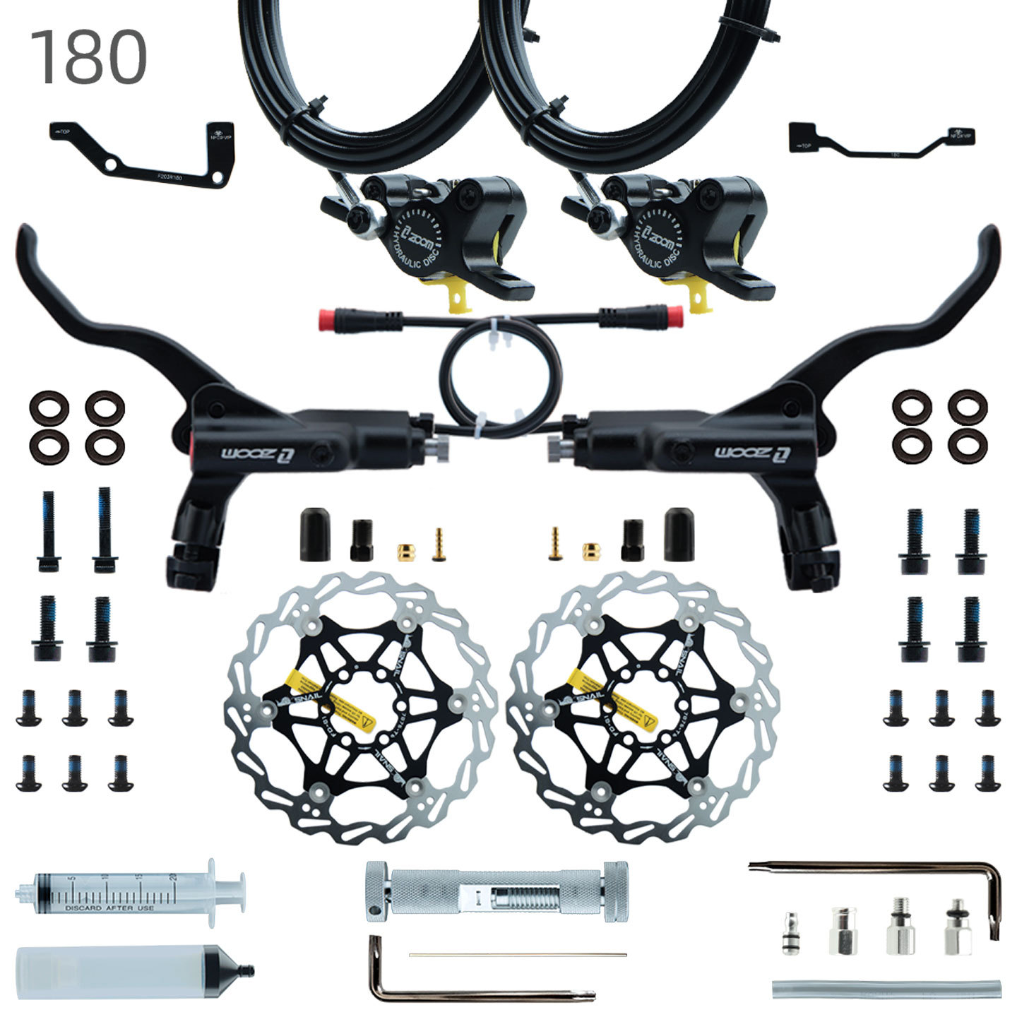 Suitable for left brake disc (models with right brake disc cannot be used). YouTube length is 2300mm and can be cut according to your needs. The calipers have been filled with mineral oil!