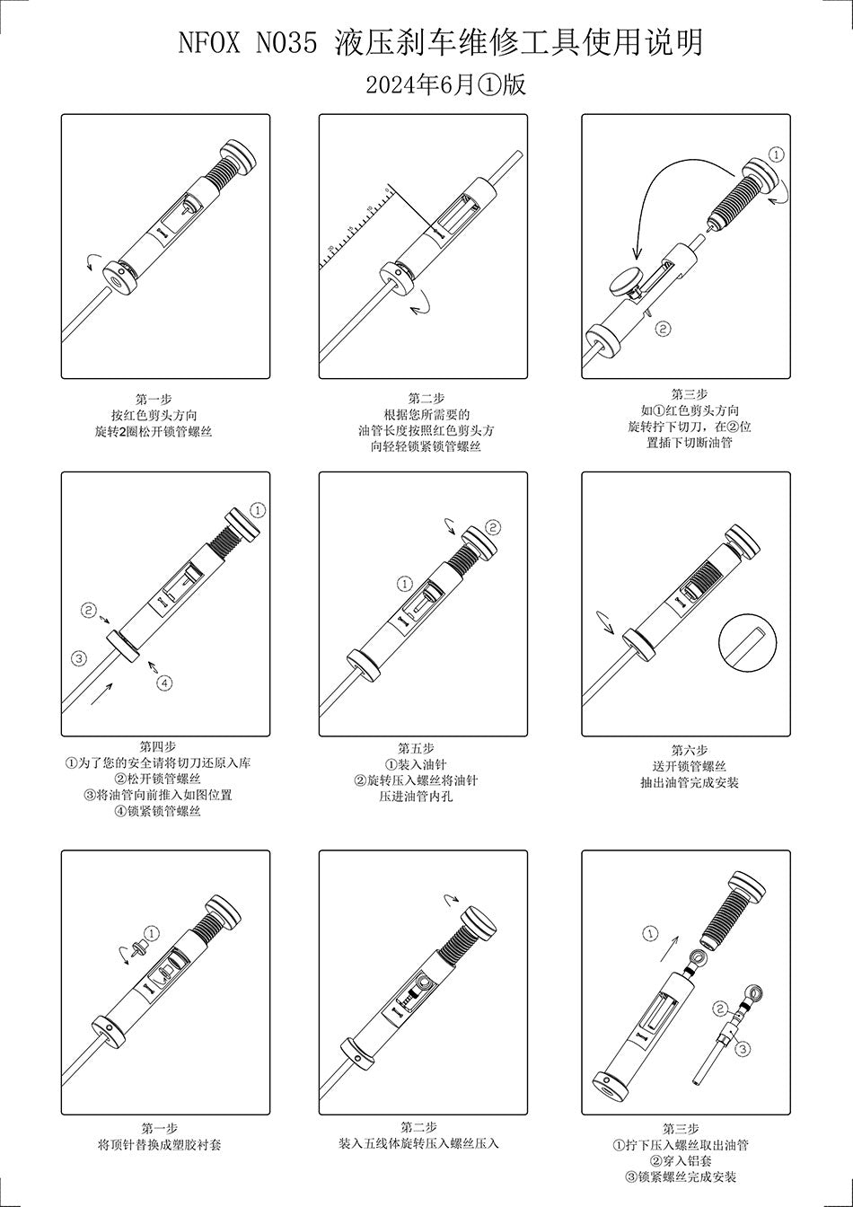 NFOX液压刹车油碟油针压入安装工具油管裁刀维修油刹铝合金