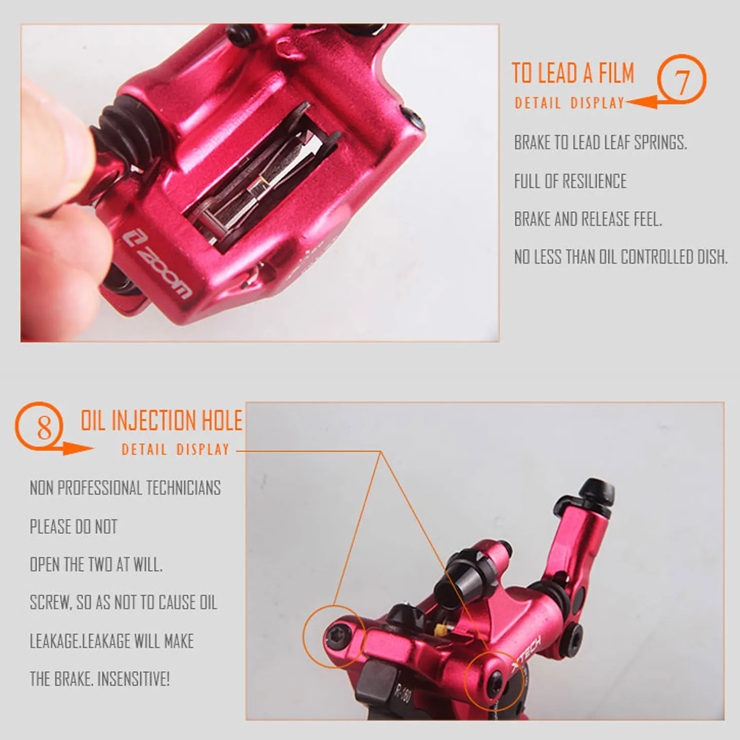 Note: Please do not remove the yellow pad before installation and pinch the brake handle empty, otherwise it will cause oil leakage or scrap the oil disc. Many customers say that our products are broken and leaking oil because of this problem. Please remember.