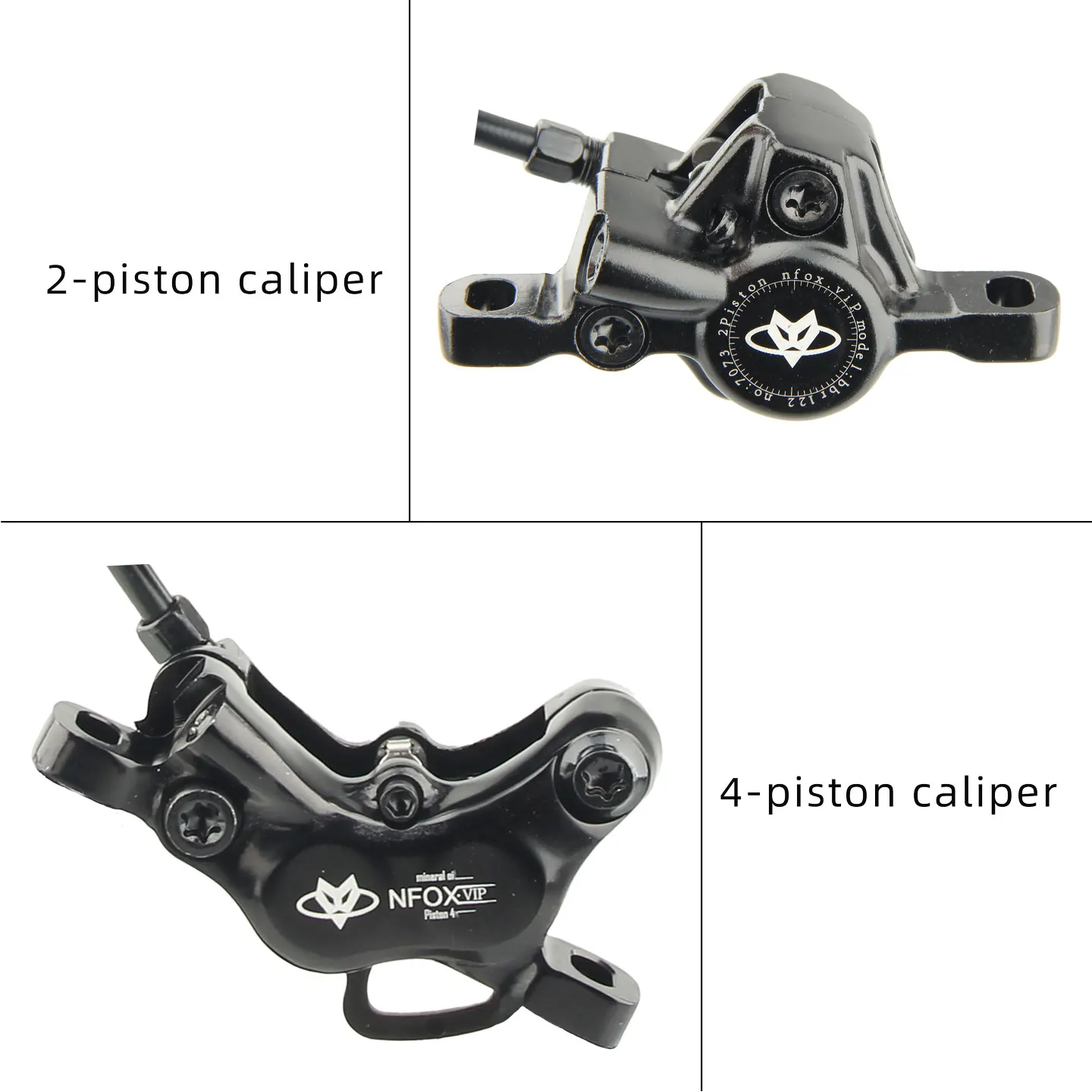 Ручка гидравлического дискового тормоза для электровелосипеда NFOX SM2A с четырьмя поршнями, двухпоршневыми суппортами, 2-контактным и 3-контактным разъемами для отключения питания.